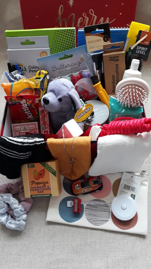 There are lots of combinations you could choose. Additional sweets are always good, or more socks, party bag fillers etc. I have found some real bargains during the year, but my second box shows you can still fill a shoebox for under £10.00 if you shop around.