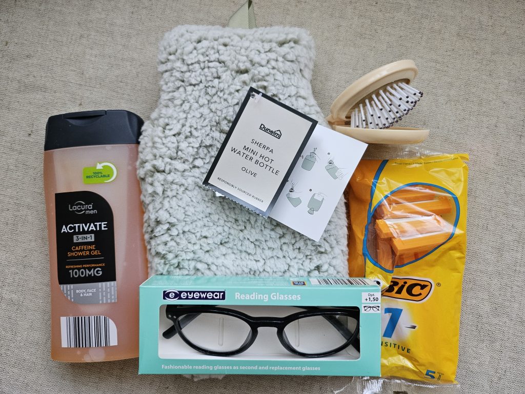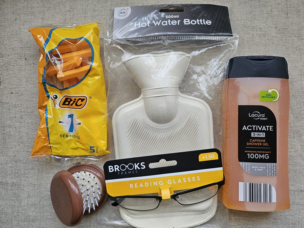 The second box is packed with items available in September, October – but Temu prices fluctuate. Once again, I’ve included Aldi’s 3 in 1 body, face and hair wash, which can be used as shampoo, and amazingly is cheaper than last year – it’s now 49p 😊.