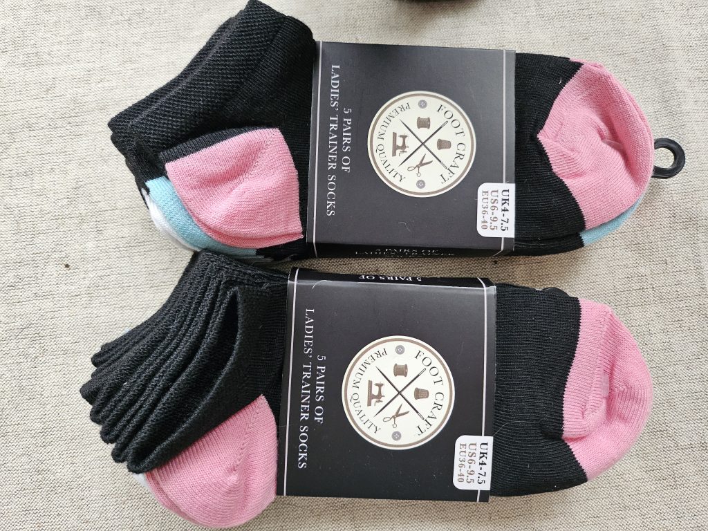 The other suggestion on the calendar is socks! The cheapest ladies socks I’ve seen recently are in Proper Job – they still have a pack of 5 pairs of ladies trainer socks for £1.00. I’ve ordered 20 pairs of men’s work socks from Temu which were £6.43 plus £2.00 postage. Including postage, they work out at just over 42p a pair. If ordering online double check that the price quoted on the initial advert is for the number, you think you’re buying. Several sites including eBay, Temu and Amazon show a number of items for a certain price, but when you click on the item the price quoted is for a lower number of items. With socks some sellers quote the number of socks not the number of pairs of socks!