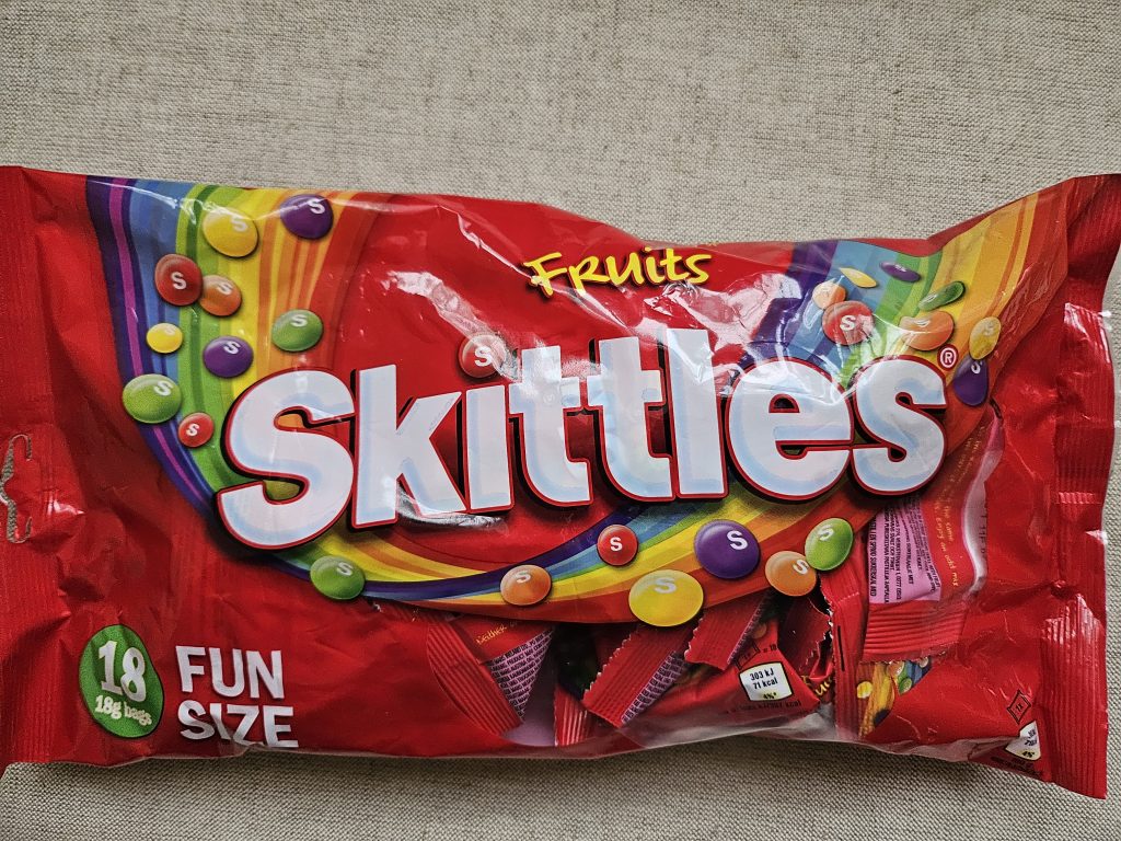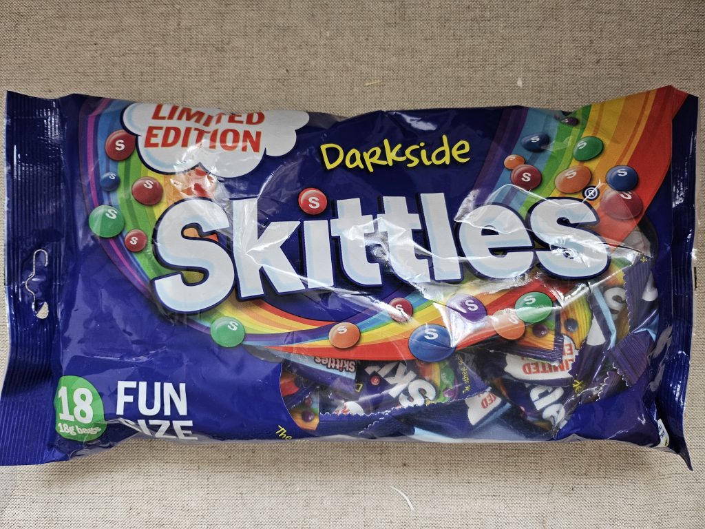 I bought some treat size packs of Skittles – 18 packs for £2.50 from Tesco, and was going to buy some packs of the Darkside Skittles but the best before dates were April 2026. Update as of 24 October Poundland have both the fruit skittles and the Darkside skittles with a best before date after June 26 and they are only £2.00 for 18 mini packs.