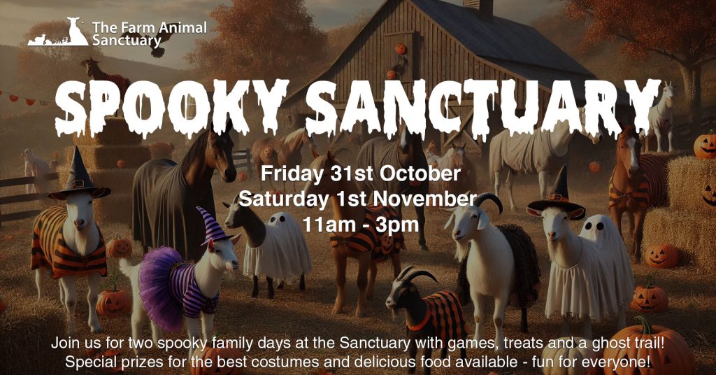 The next event at the Farm Animal Sanctuary is a Halloween event and is on Friday 31 October and Saturday 1 November from 11.00- 3.00pm each day. Tickets available from the Farm Animal Sanctuary web site.